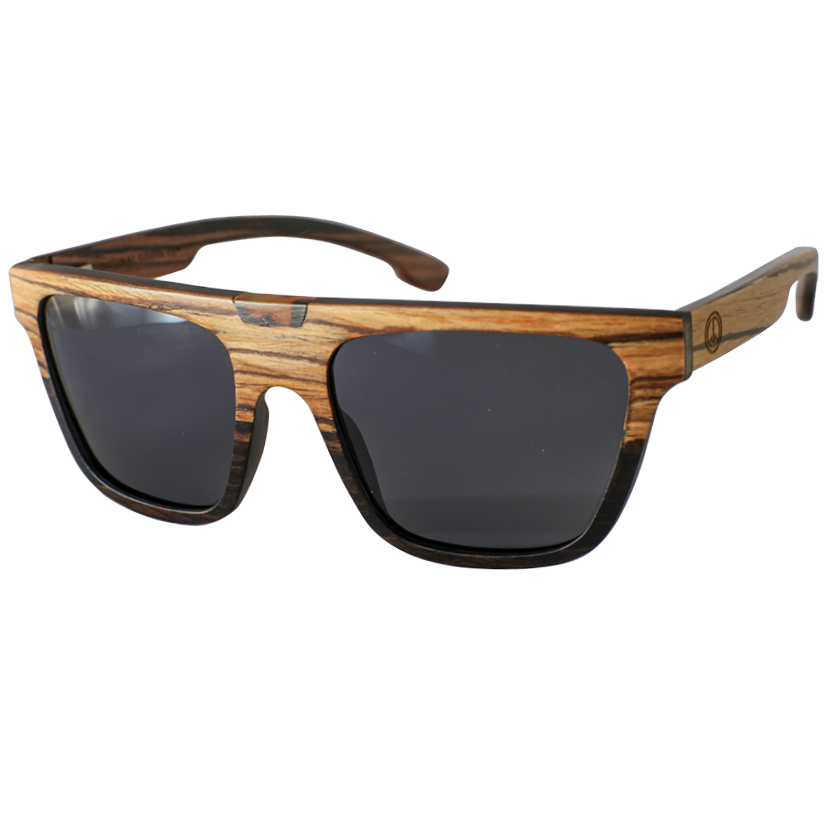 Circle the sun knowing your eyes are safe with UV400, polarized lenses in a beautiful frame with contrasting zebrawood and maple surrounding an acetate center piece.